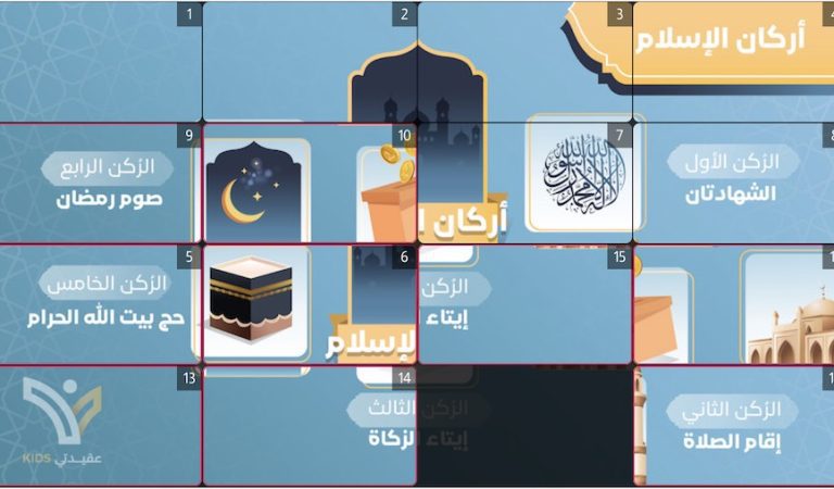 رتب صورة أركان الإسلام من خلال تحريك عناصر الصورة إلي مكانها المناسب.